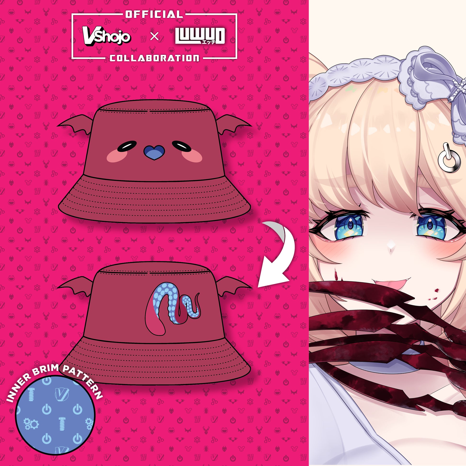 Made from polyester with a custom design inspired by the talents and brought to life by luwud. This bucket hat features embroidery, custom dye-sublimated printing, and unique accents that define each talent. Bucket hats have a 60cm circumference (size 7.5).